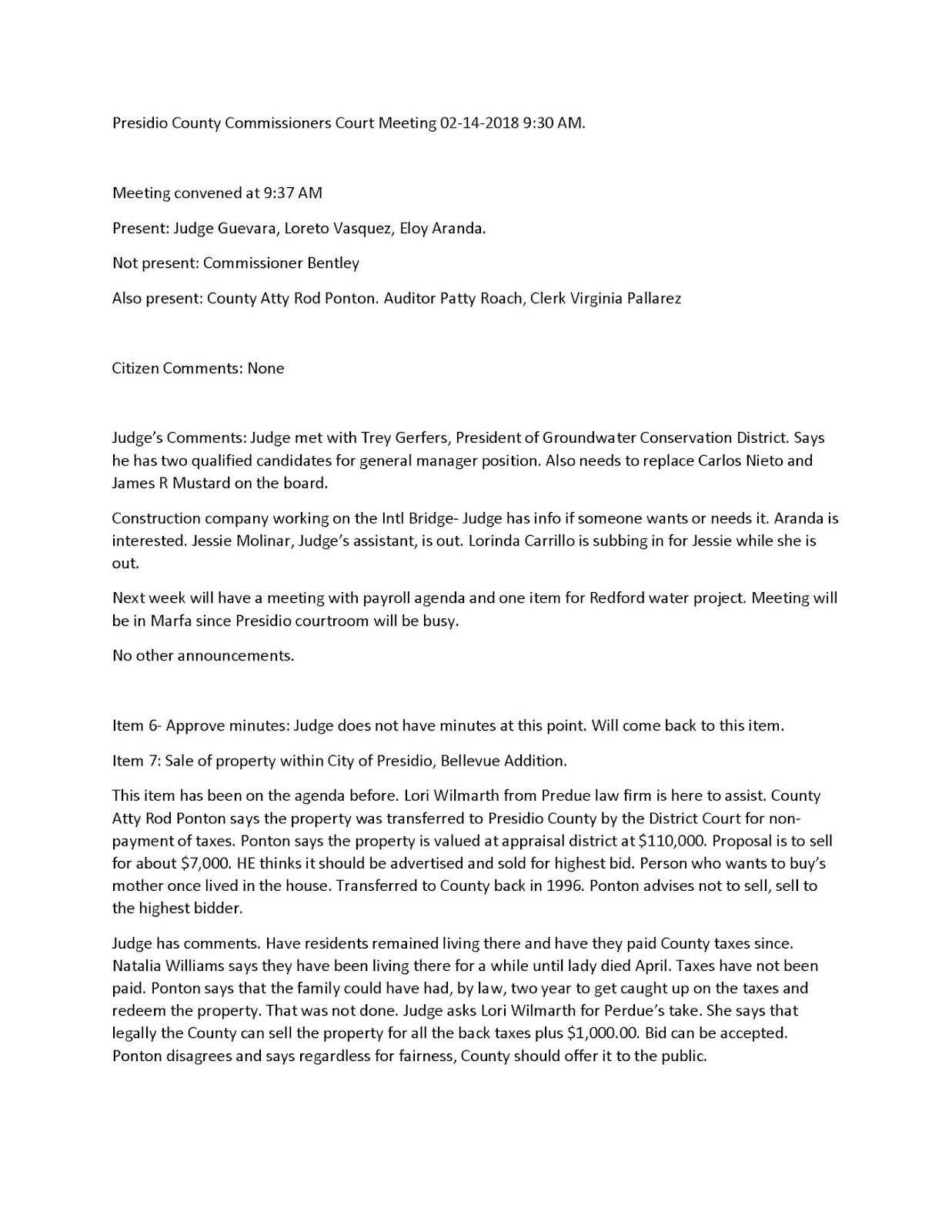 Rod Ponton Presidio County , My Assistant Here, She's Trying To, But I'm Prepared To Go Forward With It, He Said.